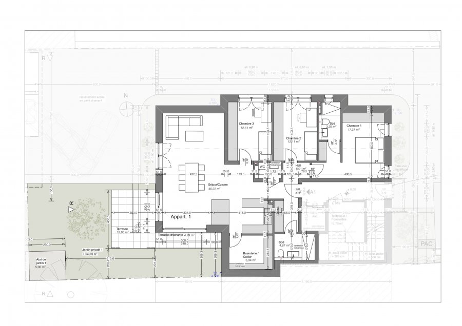- Au rdch un appartement 3 chambres à coucher à 123.44 m2 vendable