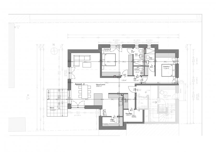 - Au 1er étage un appartement 2 chambres à coucher de 121.73 m2 vendable