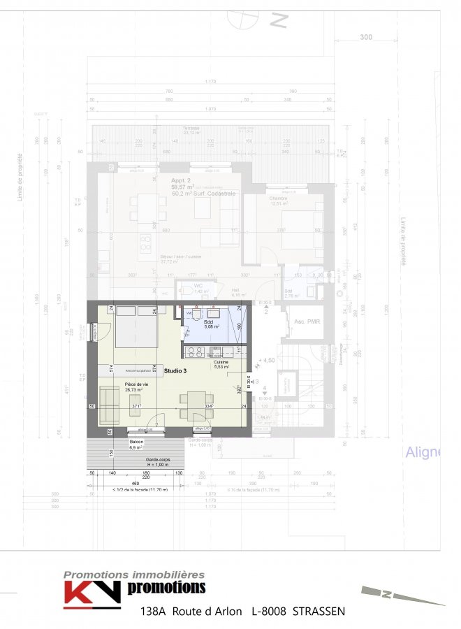 - 1 appartement 2 chambres à coucher de 99.41 m2 vendable