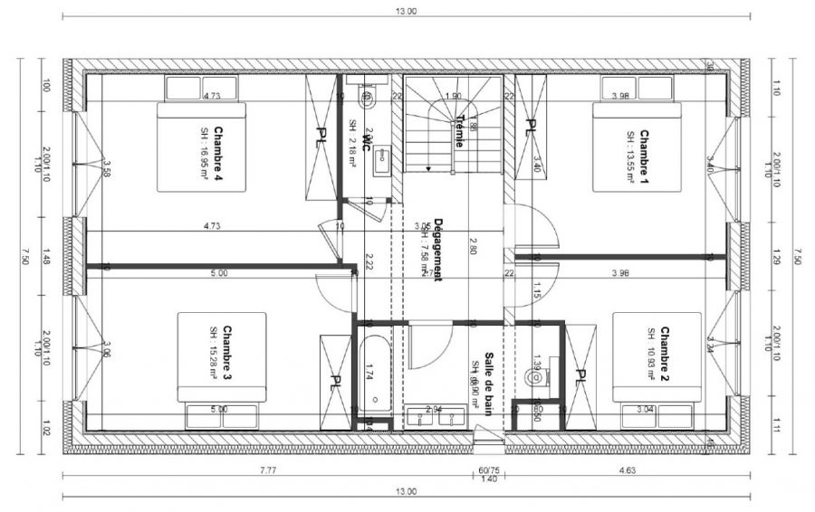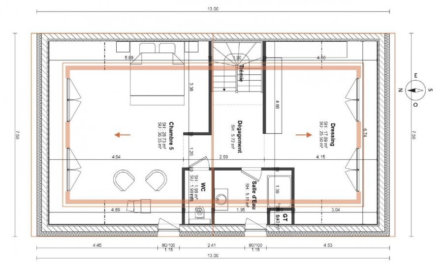 - Au 1er étage : une salle de bain avec fenêtre (équipée : une douche, une baignoire, et une double vasque), 5 chambres à coucher (respectivement de : +/-11.00m2, +/-13.75m2, +/-15.28m2, +/-15.69m2 et +/-28.73m2) dont 2 suites parentale avec salle de douche et dressing, et 2 wc séparé ;