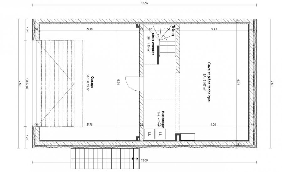 - Au sous-sol : un garage 2 voitures (+/-39.02m2), et une buanderie (+/-4.54m2), et une cave et pièce technique (+/-31.12m2)